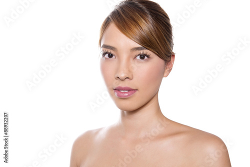 portrait of beautiful young asian woman with clear skin isolated on white