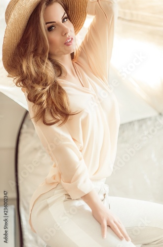 woman, young, beauty, bed, beautiful, white, portrait, home, bedchamber, person, people, sitting, happy, sofa, morning, model, hair, lady, lifestyle, 1, smiling, relax, relaxation, brunette, blond, accessory, adult, background, blue, brown, caucasian, clothes, colours, cosmetic, decoration, design, diva, elegance, eye, face, fashion, fashionable, female, girl, glam, glamour, grey