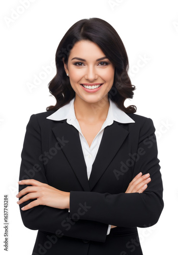 Portrait of business woman with arms crossed isolated on white or transparent background