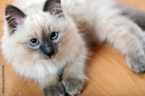 animal, background, beautiful, beauty, beige, blue, breed, brown, cat, closeup, cute, domestic, expressive, eye, eye, face, felino, floor, fluffy, fur, furry, hair, home, kitten, cat, lie, look, looking, lying, parquet, paw, paw, pedigreed, pet, portrait, pretty, purebred, cat, siamese, small, softness, staring, whisker, wood, wooden, young
