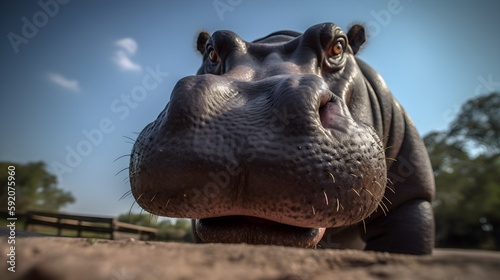 Portrait Of Dangerous Hippo / Hippopotamus - Generative AI