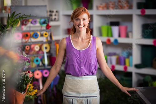 florist, smiling, female, retail, shop, the, confidence, profession, occupation, botanical, beautiful, floristry, gorgeous, portrait, cheerful, standing, business, employee, service, seller, men at work, flower, pretty, blond, botany, happy, apron, flora, of, in