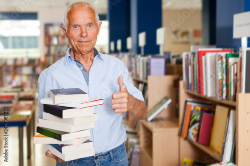 man, bookshop, library, book, shop, bookshelf, bookcase, textbook, literature, holding, pile, looking, posing, emotion, interested, confident, happy, smiling, satisfied, appearance, intelligence, modern, portrait, people, mature, year, elderly, retired, teacher, academic, reader, client, buyer, indoor, interior, education, science, preparation, exam, read, learning, choosing, shopping, lifestyle, leisure, amusement, occupation