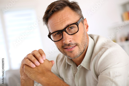 man, adult, guy, eyewear, eyeglass, optical, mature, photogenic, attractive, wearing, view, goggles, look, friendly, male, 40, smiling, portrait, closeup, style, stylish, trendy, good-looking, unshaved, unshaved, european, sitting, smile, happy, confident, smart, indoor, relaxed, man, model, modern, relaxing, home