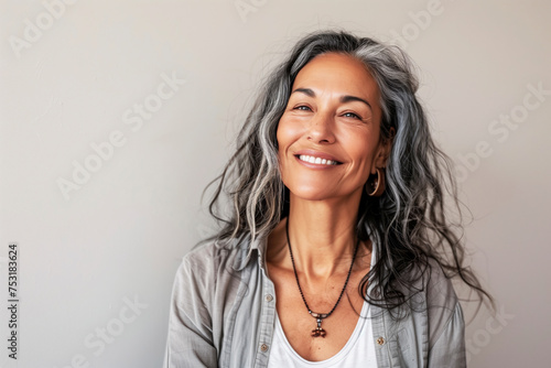 woman, portrait, mixed race, middle-aged, smiling, closeup, natural light, grey hair, wavy hair, casual clothes, attractive, lady, happy, lifestyle, female, confidence, face, middle, one person, smile, person, modern, beauty, indoor, positive, care, career, friendly, skincare, wrinkle, beautiful woman, natural, advertisement, dermatology, cosmetic, elegance, enjoy, eye, femininity, grey, joyful, mature, successful, wellness, mid-age, light background