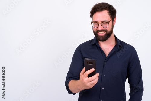 businessman, man, photogenic, beard, caucasian, people, portrait, smartphone, adult, attractive, background, blue, blue eye, business, casual attire, corporate, executive, eyeglass, goggles, guy, happy, hipster, holding, male, man, mid, mobile, moustache, nerd, person, phone, shirt, shot, smart, smiling, studio, using, white, happiness, smile, technology, cyberspace, mobile phone, communication, connection