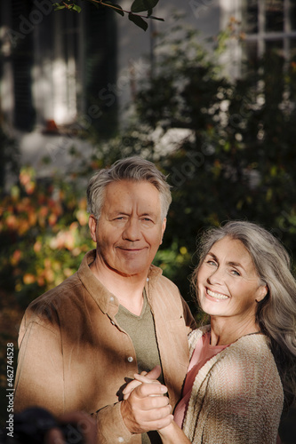 happy, senior, couple, garden, home, autumn, people, happiness, fun, smiling, copy space, adult, woman, man, relaxation, enjoying, love, standing, retirement, leisure, holding, hand, harmony, light, affection, security, bonding, ownership, sunlight, outdoors, shadow, house, dancing, casual attire, enjoyment, vitality, human relationships, confidence, togetherness, age, mature, caucasian, married, german, season, emotion, building, residential, female