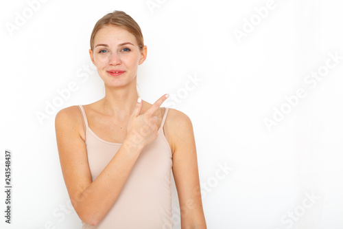 advertisement, american, attractive, background, beautiful, beauty, blank, casual attire, caucasian, celebration, concept, copy, cute, emotion, emotional, european, face, female, finger, fun, girl, hand, happy, holiday, isolated, lady, lovely, model, offer, 1, people, person, place, portrait, pretty, promotional, show, smile, space, surprise, text, white, winter, woman, wonder, young