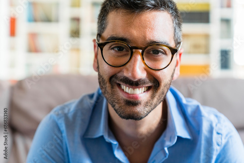 happy, people, home, copy space, paint, beard, black, couch, light, leisure, single, closeup, modern