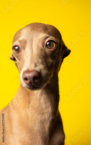 dog, greyhound, animal, canino, whippet, portrait, piccolo, funny, affectionate, pet, friends, yellow, happy, friendly, 1, happiness, beautiful, brown, studio, cute, puppy, background, doggy, lovely, little, small, puppy, vertical