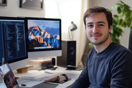 Portrait of male programmer in office. Development programmer working software and coding technology