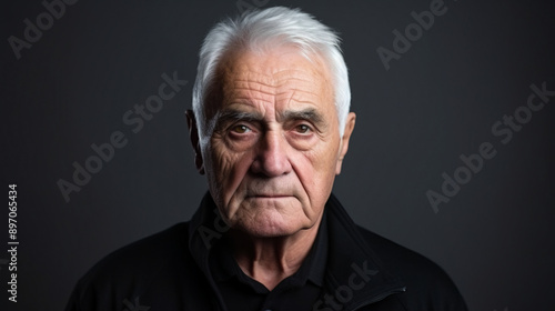 portrait of old man looking at camera, senior man with white hair, serious or tired sad face, photography.