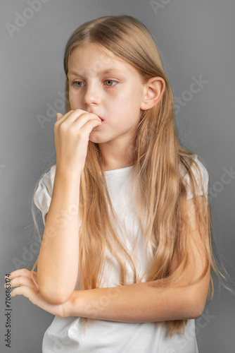 children, girl, thoughtful, face, portrait, sad, expression, serious, unhappy, person, little, emotion, loneliness, thinking, upset, adorable, looking, boredom, caucasian, childhood, cute, concentration, depressed, depression, despair, emotional, frustration, hope, human, innocence, lonely, pensive, preschool, sorrowful, teenage, worried, bored, melancholy, long hair, young, beautiful, alone, confused, expressive, frustrated, grey, thought, mood, beauty