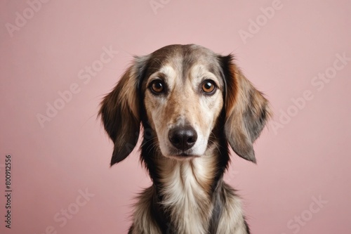 Portrait of Saluki dog looking at camera, copy space. Studio shot.
