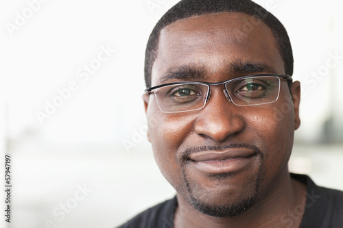 Portrait of smiling businessman with glasses looking at camera