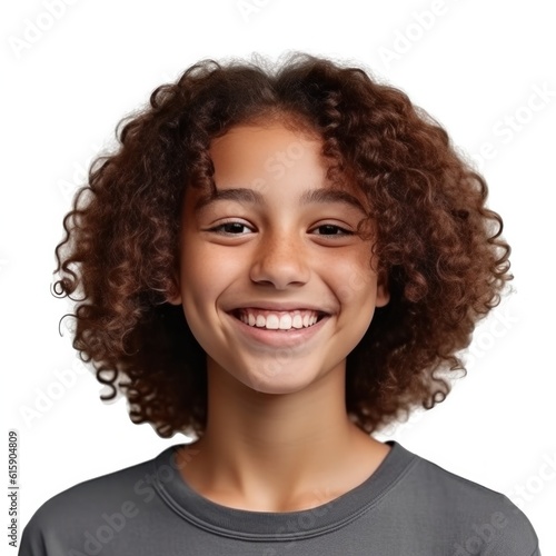 Portrait of smiling young girl for profile picture. Illustration Generative AI.