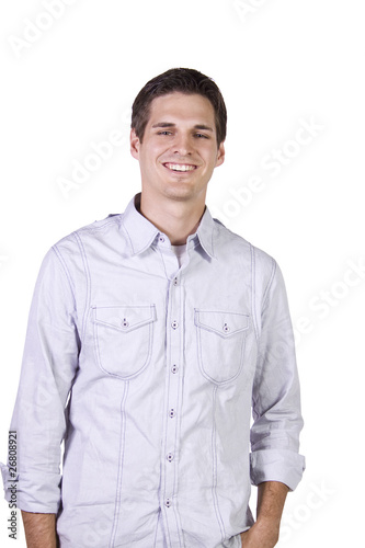 man, modelling, fashion model, standing, attitude, groomed, photogenic, posing, portrait, stylish, guy, dashing, macho, stud, masculine, attractive, sexy, dude, trendy, young adult, one person, vertical, color image, isolated on white, white background, indoor, waist up, handsome man, haute couture, male, t-shirt, trousers, wearing, racked, up
