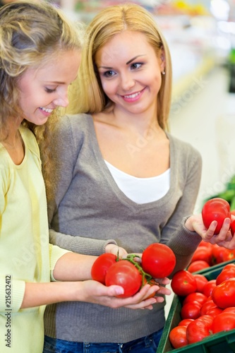 Portrait of Two Women Choosing Vegetables in a Supermarket