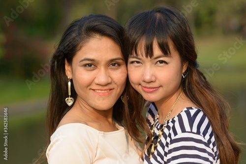 Portrait of two young Asian women together at the park