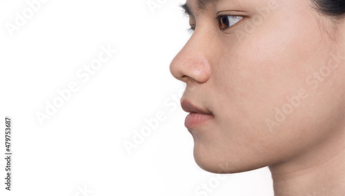 Portrait of young Asian woman with beautiful face and healthy facial skin perfect clean skin on white background. Girl facial treatment, Cosmetology, beauty, and spa. Beauty and Skincare Concept.
