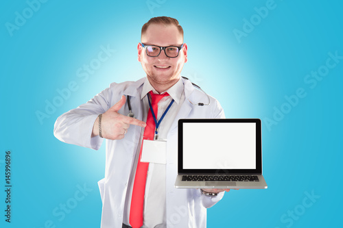 Portrait of young handsome happy male doctor.