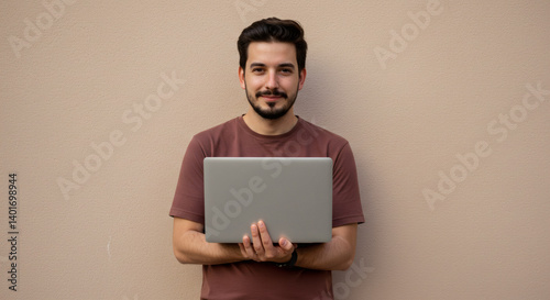 laptop, asian, man, technology, freelancer, remote, young, casual attire, male, portrait, holding, computer, work, professional, digital, entrepreneur, business, modern, smiling, online, job, standing, isolated, background, adult, creative, device, confident, lifestyle, cyberspace, studio, communication, serious, office, tech, workspace, minimalism, positive, virtual, relaxed, productivity, student