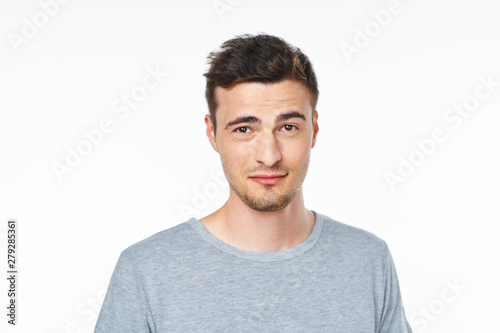 young, happy, man, portrait, studio, white, male, background, casual attire, smile, guy, isolated, people, model, photogenic, adult, person, success, business, beard, fashion, face, shirt, standing, man, confident, businessman, camera, attractive, looking, hair, lifestyle, 1, joy, beauty, blue, hispanic, caucasian, smart, positive, showing, modern, excited, style, stubble field, good, up, photo, cheerful, victory