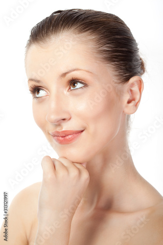 portrait, face, white, beauty, skin, care, beautiful, girl, young, female, clean, healthy, fresh, health, isolated, spa, caucasian, model, woman, adult, pretty, attractive, background, studio, natural, honed, 1, smile, body, head, brunette, eye, clear, hair, woman, sexy, happy, skincare, make-up, sensuality, cute, cosmetic, treatment, looking, shoulder, freshness, wellness, closeup, look, person