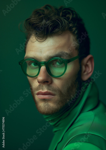 guy, goggles, green, portrait, photograph, greenish, lime, leafy, serious, colours, fashion, face, sunglasses, man, man, model, beard, closeup, trendy