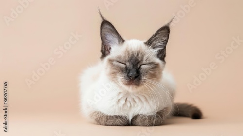 Portrait photography of a cute little Balinese cat happy smiling , studio shot isolated on single color background ,editorial style, shoot by DSLR .