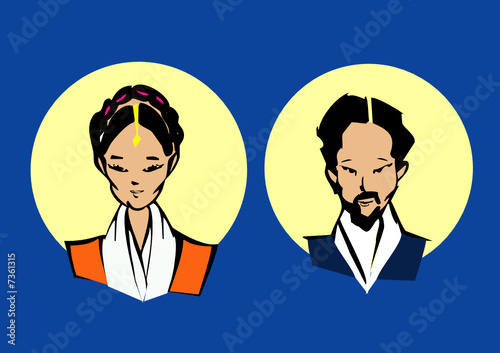 man, man, woman, woman, couple, people, person, person, face, face, visage, expression, look, appearance, physiognomy, front, portrait, portrait, caricature, caricature, cartoon, cartoon, clip art, vector, comic, illustration, illustration, image, series, diversity, ethnic, asian, asian, asia, tibet, tibetan
