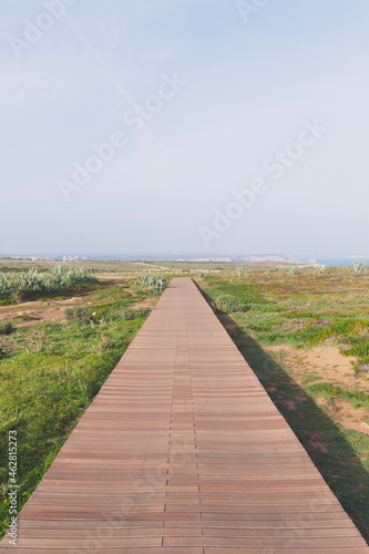 portugal, algarve, boardwalk, coast, copy space, travel, journey, relaxation, solitude, absence, wanderlust, calmness, immensity, wooden, recreation, atlantic, sea, day, outdoors, strolling, hiking, freedom, nobody, vacation, sky, horizon, landscape, nature, footbridge, wood, water, walking