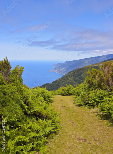 portugal, atlantic ocean, madeira, archipelago, island, portuguese, travel destination, travel destination, tree, green, field, meadow, blue, sky, forest, day, sunny, landscape, nature, vista, idylli, view, laurel, daylight, exterior, outdoors, vertical, copy space, copy space