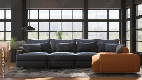 postmodern living room interior in loft, industrial style, vintage, Generative AI