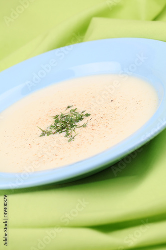 potato, cream, cress, nutmeg, grated, meal, organic, food, vegetable, vegetarian, vegetarian food, healthy, fresh, plate, green, blue, napkin, clothes, tablecloth, lunch, dinner, dish, epicure, nobody, vertical