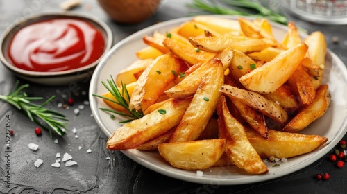 Potato fries served on a white dish