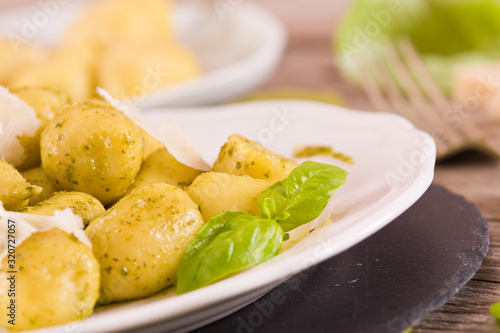 gnocchi, dumpling, pesto, sauce, green, potato, food, meal, pasta, dough, italy, italian, cooked, basil, parmesan, olive oil, seasoning, condiment, garlic, vegetable, vegetarian, herb, spice, flake, cheese, snack, slice, cookery, epicure, tasty, ingredient, gastronomy, edible, portion, culinary, nourishment, alimentary, homemade, organic, delicious, savoury, plate, receipe, autumn, rustic, traditional, filled, stuffing, filling