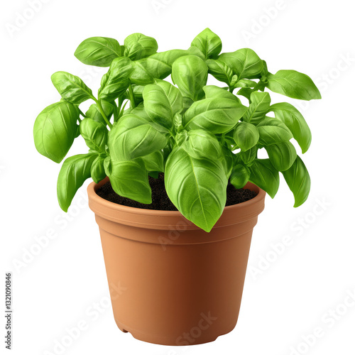 Potted Basil Plant Isolated On transparent
