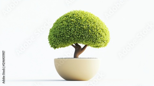 Potted Green Bonsai Tree with Lush Leaves in Minimalist Setting