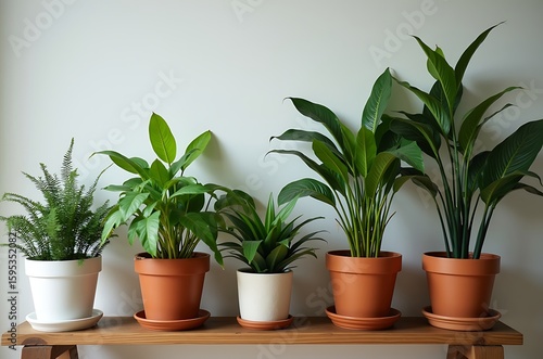 Potted Plants Shelf Decor White Wall Minimalist Home Decor ai generated