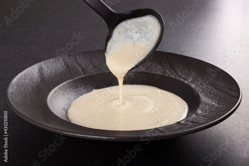 food, background, black, concept, cooking, copy space, cookery, culinary, dark, design, diet, dining, dinner, dish, crockery, fresh, epicure, healthy, homemade, hot, kitchen utensile, ladle, lunch, meal, nobody, nourishment, plate, scoop, spoon, stylish, tableware, tasty, soup, pouring, modern