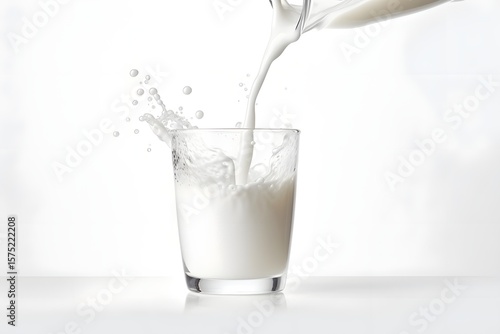 Pouring Fresh Milk into Glass with Splash on White Background