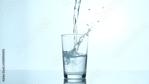 water, glasses, pouring, liquid, splash, bubble, refreshment, cool, clear, transparent, clean, purity, hydratation, thirst, drink, healthy, lifestyle, blue, light blue, white background, studio shot, closeup, macro, detail, texture, flow, movement, dynamic, energy, serenity, calm, peaceful, minimalist, simple, elegant, modern, contemporary, advertising, commercial, beverage, drinking water, fresh water, pure water, healthy living, wellness, still life