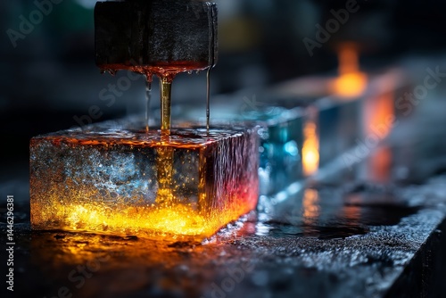 cooling, industry, manufacturing, metal, process, production, water, liquid, cube, block, drip, machine, factory, flow, background, engineering, equipment, material, dark, industrial, innovation, steel, shiny, construction, technology, blurred, surface, energy, power, melting, iron, molded, form, shaping, science, cold