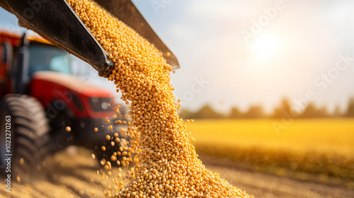 pouring, soybean, grain, tractor, trailer, harvesting, agricultural, process, farming, equipment, farmland, harvest, crop, field, autumn, closeup, merging, gold, growth, land, machine, machinery, seed, farmer, ripe, scene, sunlight, wheat, barley, business, holding, industry, ingredient, raw, rural, sun, bean, cereal, country, dry, hand, harvester, healthy, nature, outdoors, soy, yellow, agriculture, auger