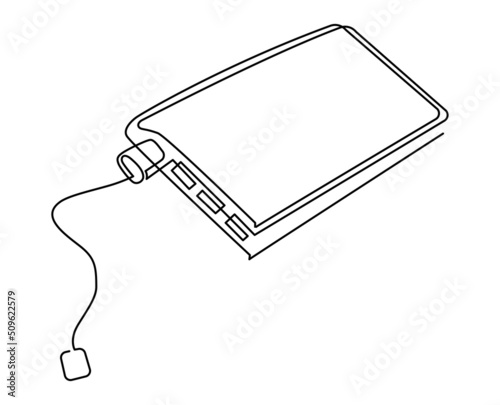 Power bank. Mock-up. Vector continuous line drawing isolated on white background.