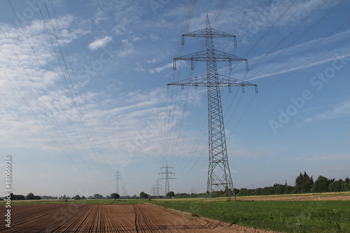 tower, electric, pylon, white, power, engineering, line, field, cable, electricity, grass, supply, distribution, voltage, cloud, technology, equipment, energy, tall, area, electrical, industrial, high, architecture, blue, sky, background, transmission, danger, wire, industry, nature, environment, generation, construction, structure, metal, landscape, high voltage