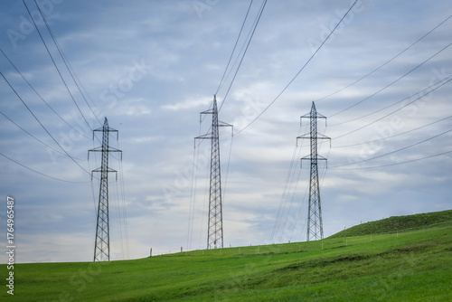 Power lines on a grassy ridge