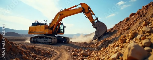 Powerful excavator digs deep into the earth during a large-scale civil engineering project Heavy machinery, construction site, earthmoving, industrial equipment in action , industrial, tracks
