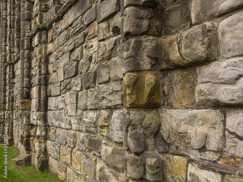 Powerful Middle Ages massive stone wall in perspective. Scotland, public places.